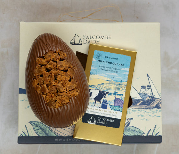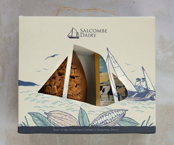 Presented in a fully compostable craft style box featuring our signature yawl-shaped cutout, this is a beautifully crafted Easter treat that brings together fudge lovers and milk-chocolate devotees alike.