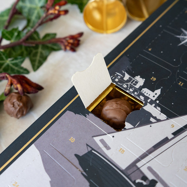 This gorgeous calendar shows the familiar Yawl boat design that is seen all over our Salcombe Harbour and is also an integral part of our company logo. Our advent calendars and packaging are fully compostable once used. Other designs and flavours available.