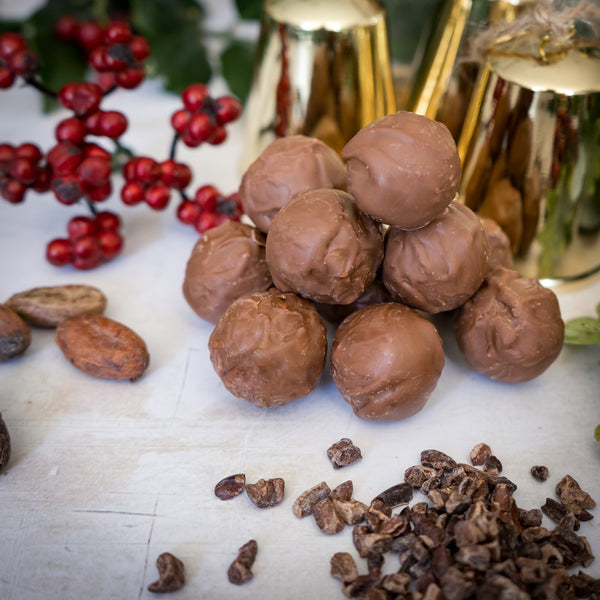 Our award-winning Bean to Bar chocolate is made in Salcombe from organic cacao nibs from the rainforest, melanged with raw cane sugar before conching, tempering & moulding into these wonderful artisan chocolate truffles. All of our Chocolate is Nut Free, Gluten Free, Soya Free and Palm Oil Free PLUS we only use natural ingredients.
