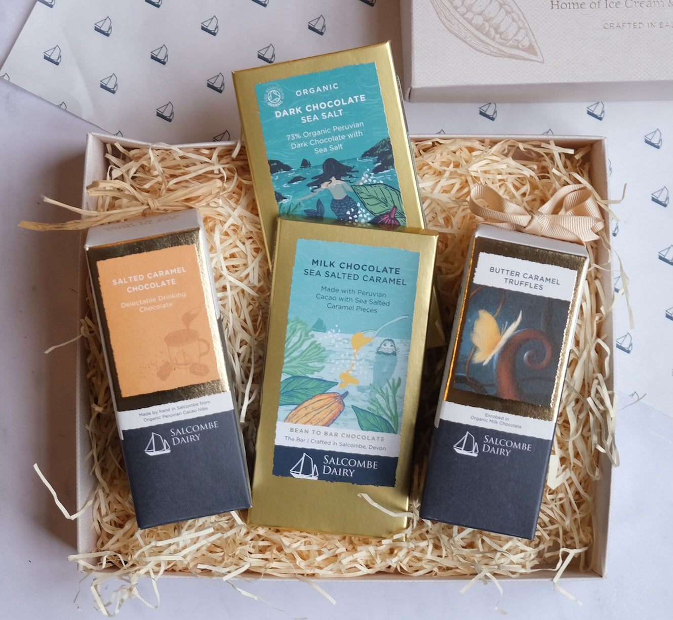 Inspired by Salcombe’s maritime heritage — once a thriving port for ships carrying fruit, sugar, cacao and rum — this hamper celebrates coastal flavours and timeless craftsmanship. A truly special gift for chocolate lovers who appreciate the harmony of sweet, salty and sublime.