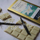 Bean to bar white chocolate with vanilla. Pure bourbon Madagascan vanilla seeds are blended with cocoa butter to create a clean, sweet vanilla infused white chocolate.